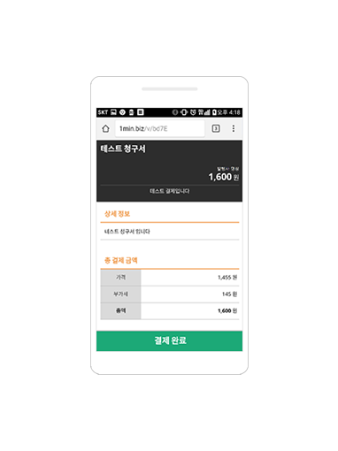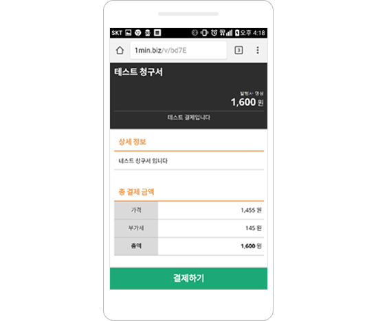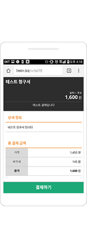고객의 휴대전화번호나 이메일로 청구서가 전송됩니다.